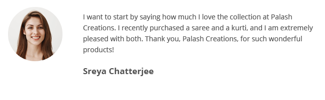 Where Timeless Elegance Meets Contemporary Flair. At PalashCreations, we believe that fashion is an art form, a means of self-expression that transcends trends and generations. Our brand merges classic sophistication with modern aesthetics, crafting apparel that resonates with both tradition and innovation. Whether you’re looking to make a bold statement or add a touch of grace to your wardrobe, PalashCreations offers an array of fashion-forward choices that cater to diverse tastes and occasions. Discover the art of refined fashion with PalashCreations – where every piece tells a story of grace, style, and sustainability.